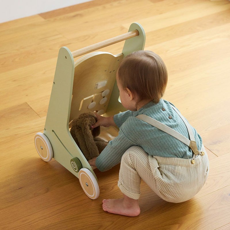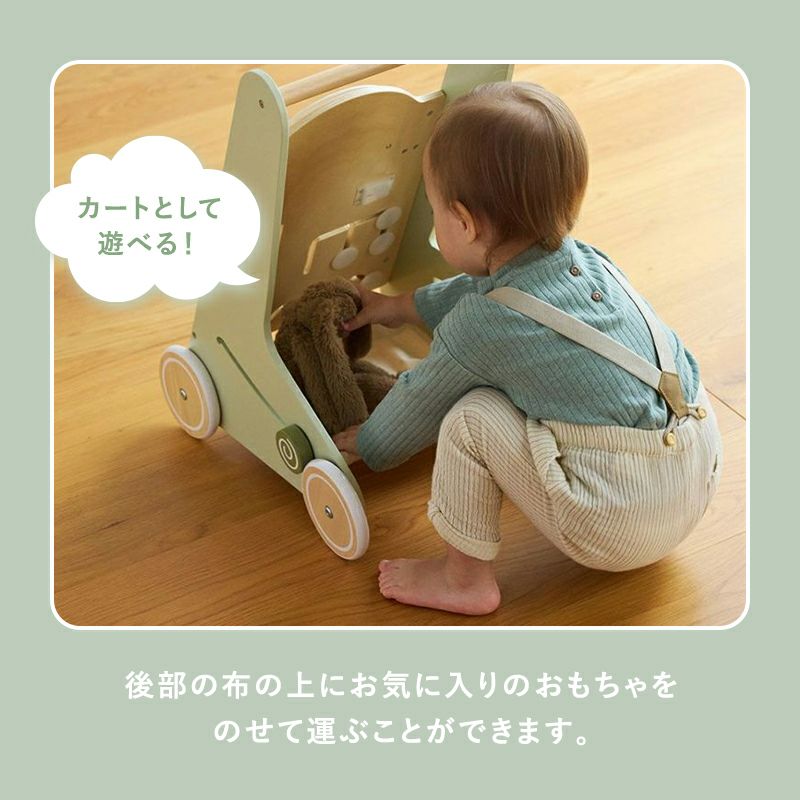 後部の布にはお気に入りのおもちゃをのせられるので、カートとして遊ぶこともできます◎