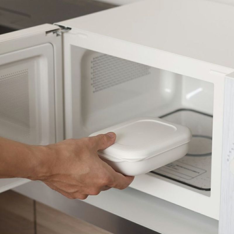 電子レンジで冷凍ごはんをムラなくふっくらと温められる保存容器。