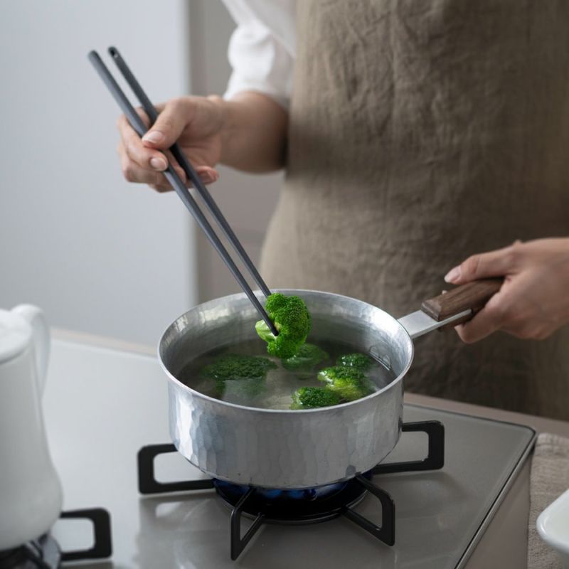 丸みのある四角から円に変化するグラデーション形状で、箸同士がからみにくく作業しやすい設計。