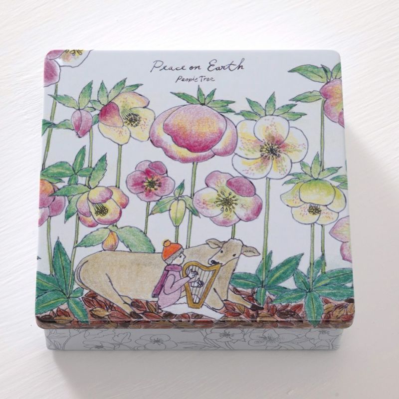 People Tree(ピープルツリー) フェアトレードチョコレート イラスト缶 ウシさんと子ども ミルク&カラメル