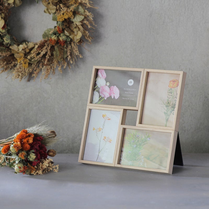 4つの枠が連なったフォトフレーム。シンプルながら品のある色合いとデザインは、どんなお部屋にもしっくりと馴染みます。4枚の写真を並べて飾れるので、ストーリー仕立てに写真を選ぶのもおすすめ。フレームに飾る写真選びが、もっと楽しくなるかもしれません。