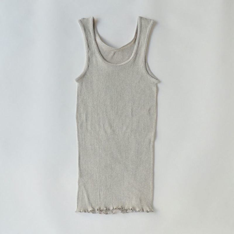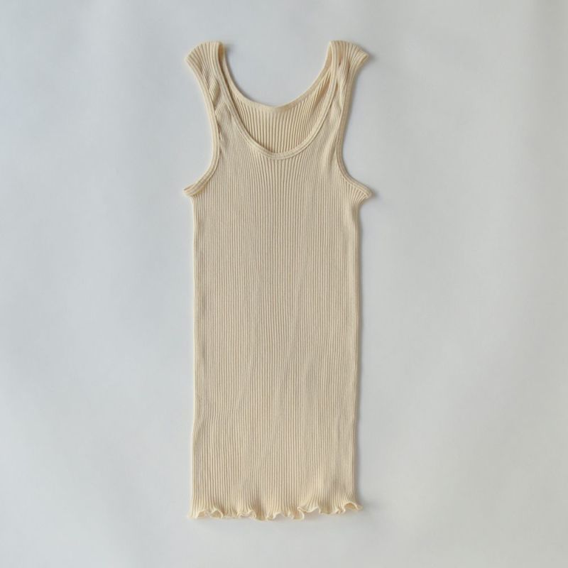 凹凸のあるリブ編みで、とにかくよく伸び、体にフィット。サイドに縫い目がなく、ゴワつかないので就寝時にもおすすめ◎