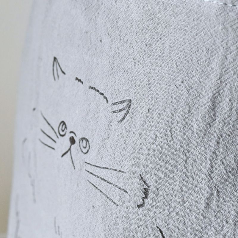 少し持ち運ぶときに便利なハンドル付きで、表生地はやわらかい綿生地を使用。