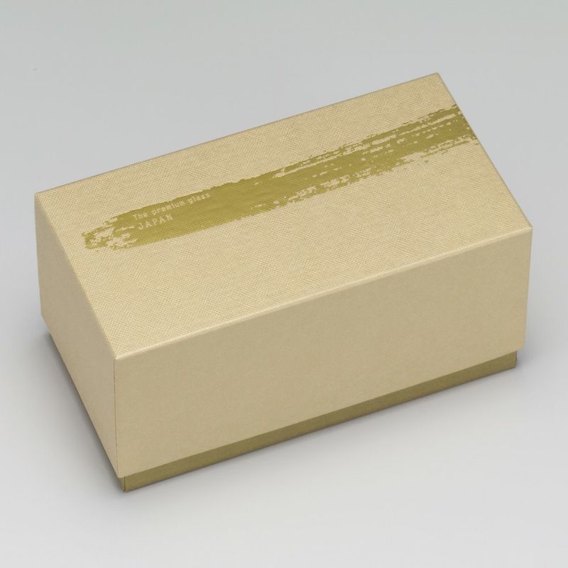 キラキラと煌めく金の一文字が入った、モダンな雰囲気のロックグラス。グラス表面を特殊技術(みぞれ仕上げ加工)で、涼しげな風合いに仕上げています。ペアセットなので、ご家族やご夫婦で一緒にお使いいただけます。専用パッケージ入りで、ギフトにもぴったり。