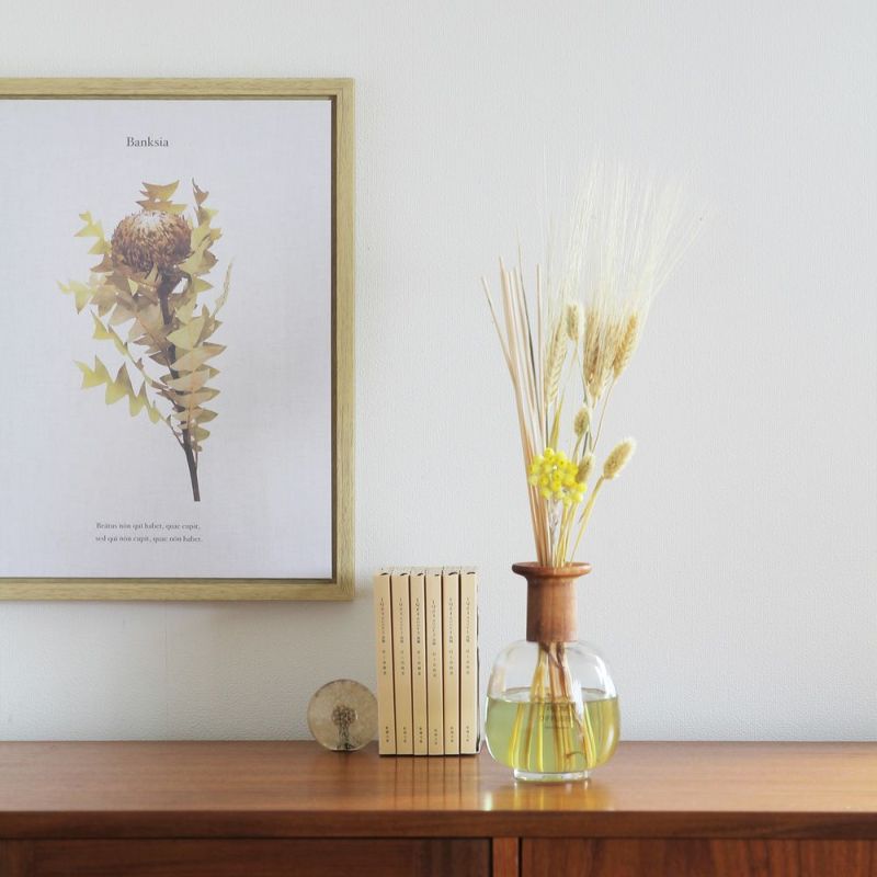 丸みを帯びたフォルムがキュート。香りをお楽しみいただけるのはもちろん、ドライフラーを挿してフラワーアレンジメントをお楽しみいただくこともできます。スタイリッシュな専用パッケージ入りなので、ギフトにもぴったりです。