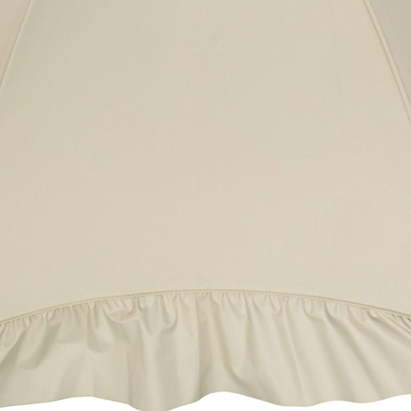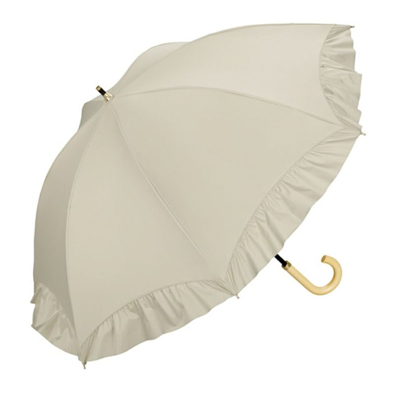 大きめのフリルを裾全体にあしらった、華やかながらも上品な長日傘です。