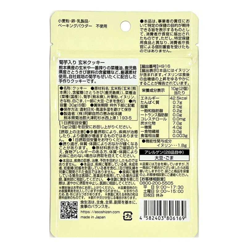 玄米粉(玄米(熊本県))、含蜜糖(さとうきび(鹿児島県))、菜種油(菜種(国産))、菊芋(熊本県)、片栗粉、イヌリン、きな粉、白ごま、(一部に大豆・ごまを含む)