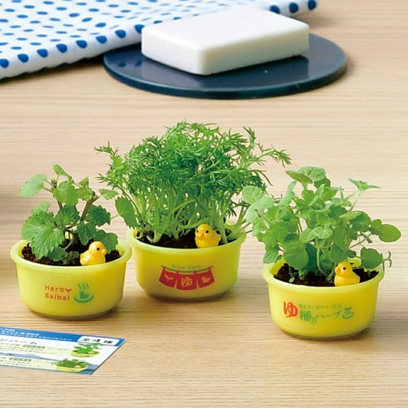 昔なつかしい銭湯でおなじみのミニ風呂桶でハーブを育てます。