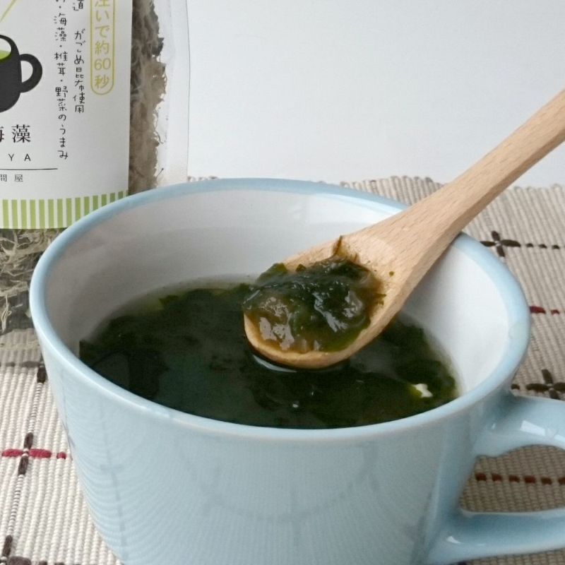 お湯を注ぐだけであっという間に完成!具だくさんの海藻スープ