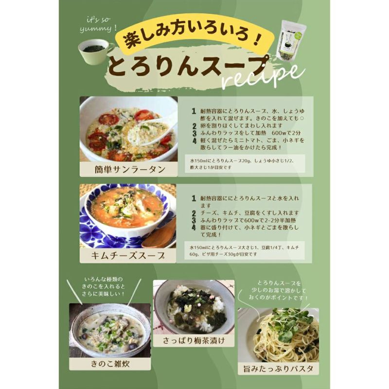 粘りの強いがごめ昆布入り白とろろと、がごめ昆布・真昆布・他国産昆布の細切りが入った具だくさんのとろとろスープ。昆布と海藻の栄養がたっぷり。