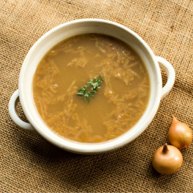国産玉ねぎをじっくりあめ色になるまで炒め、甘みを最大限に引き出したコクと旨味が深いオニオンスープ。