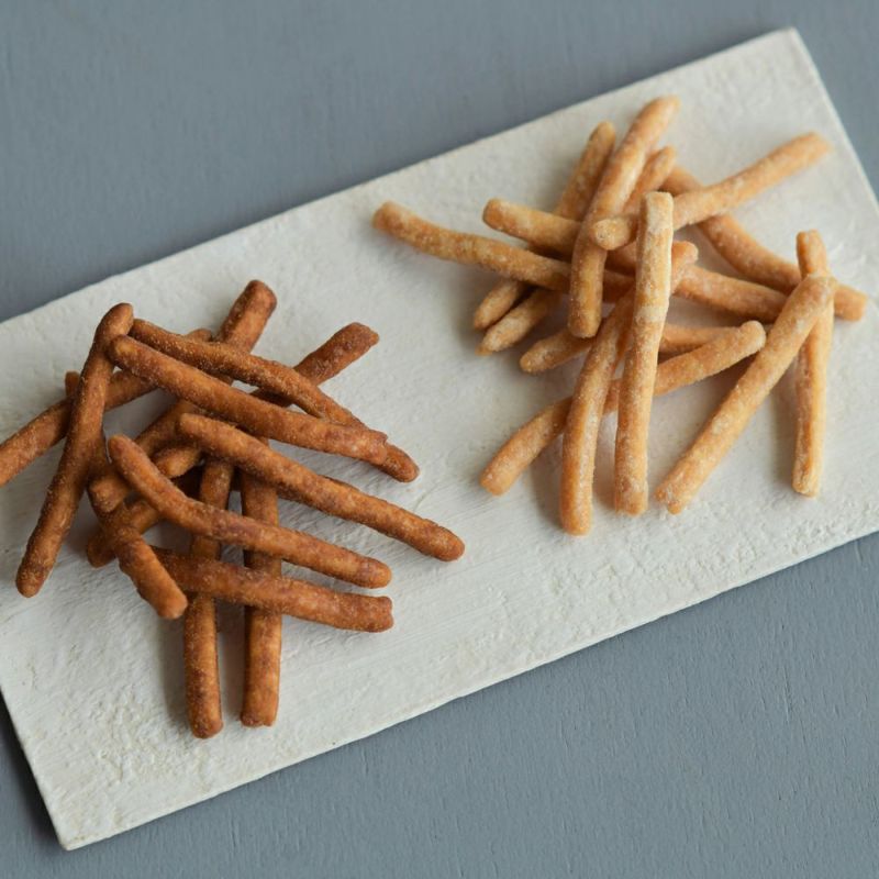 石臼挽き全粒粉、平飼い有精卵、粗糖をはじめとした厳選素材を使い、国産米油で手揚げした素材感あふれるかりんとう。