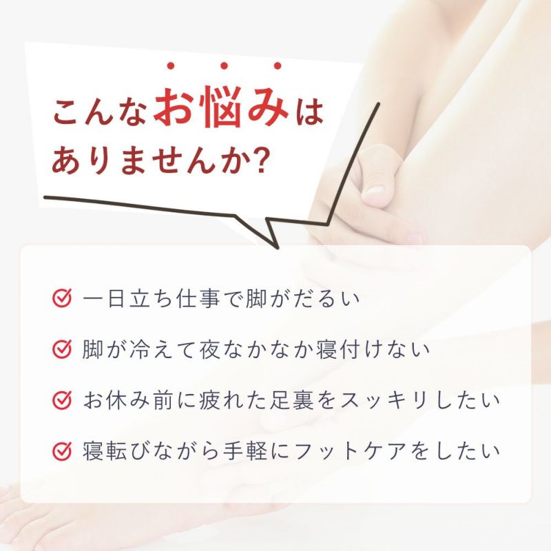 ふくらはぎを温めながら、一定のリズムで振動。足を包み込むように配置したエアバッグが加圧と収縮を繰り返し、足裏突起がグイっと足裏を刺激します。
