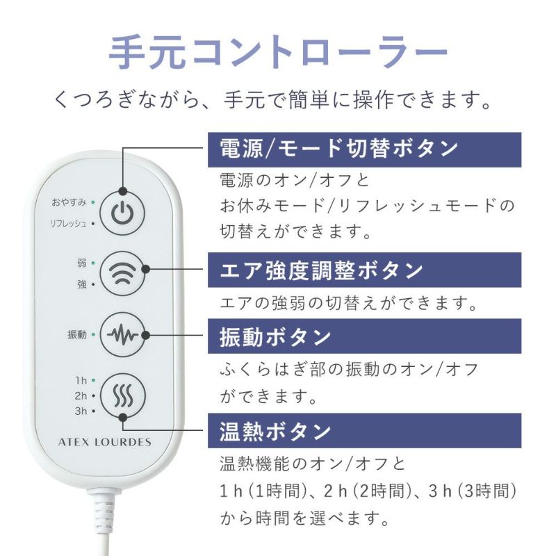 温熱×振動×エアバッグのトリプルケアで心地よさを誘います。