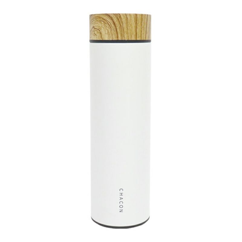 木目調のフタとマットなカフェカラーがポイントのステンレスボトル。