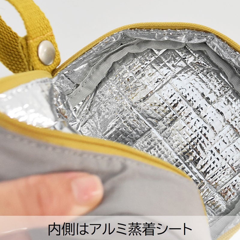 内側はアルミ蒸着シート加工で、少し持ち運ぶときに便利なハンドル付きです。