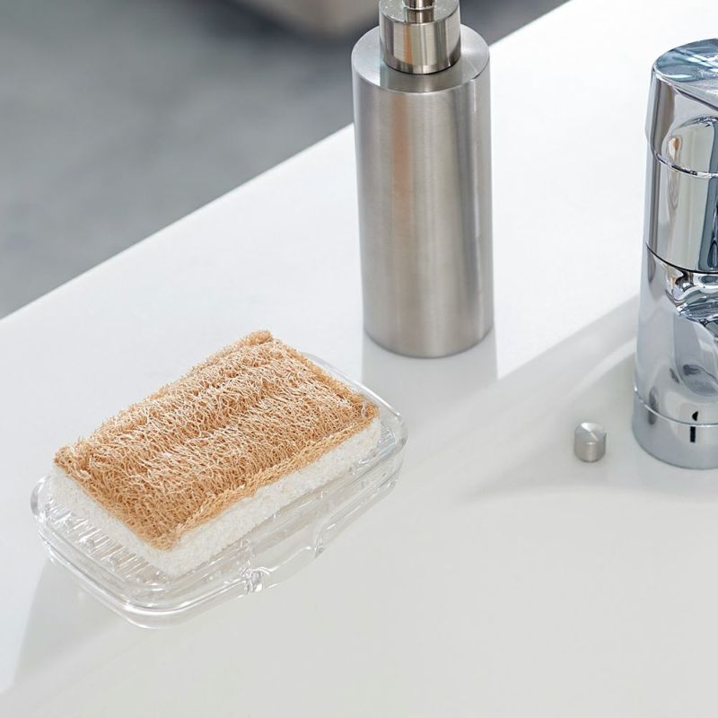シンク内に自然に水が切れる衛生面に配慮した排水構造のソープトレーです。トレーが滑り落ちないように、裏面には吸盤が付いています。2重構造になっており、吸盤も取り外しができるのでお手入れが楽々。トレーは、溝の深さにこだわった水はけのよい波型設計。せっけんだけでなく、うがいコップやスポンジなど水回りアイテムを置くのにもぴったりです。