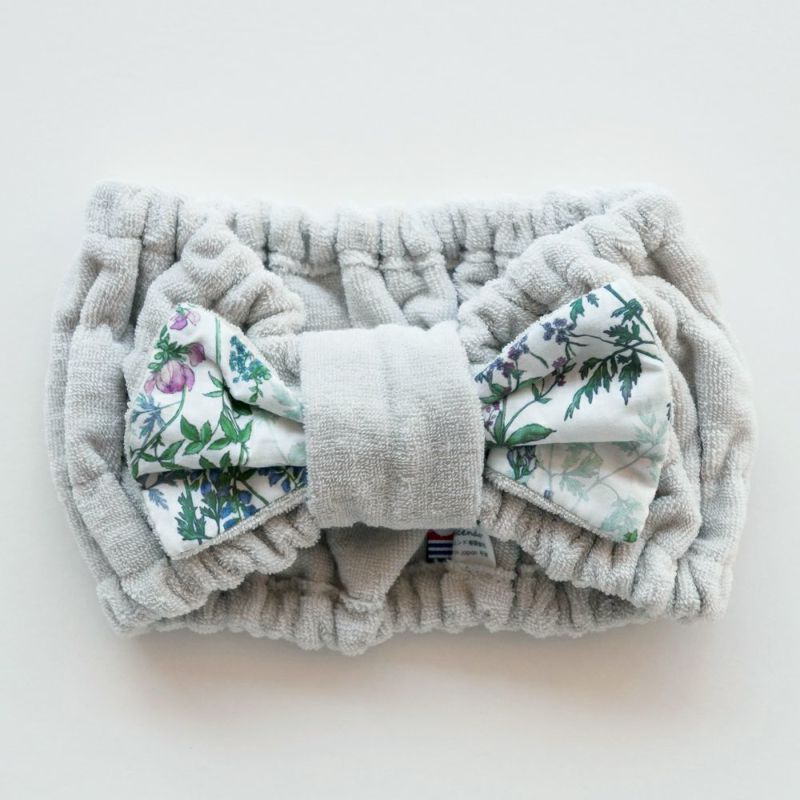 花柄プリントとパイル地のリボンは、気分に合わせて表裏を替えられるのも嬉しいポイント。