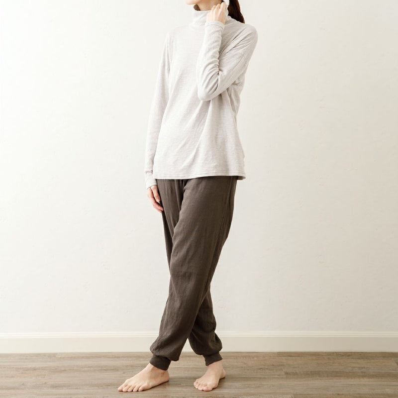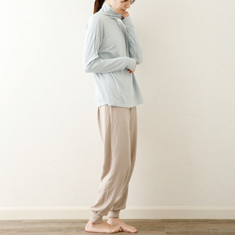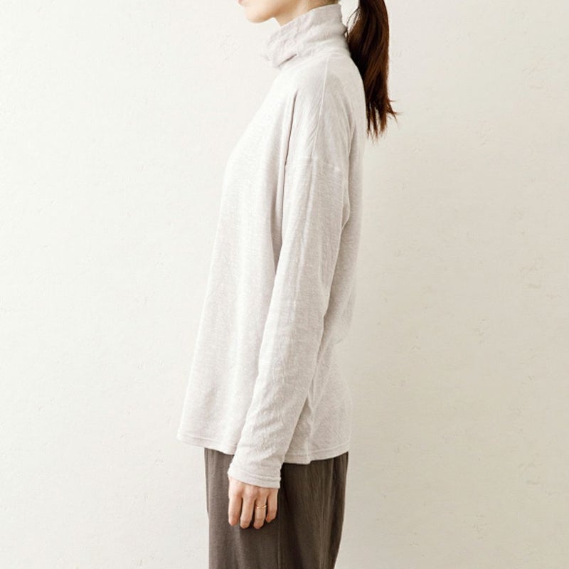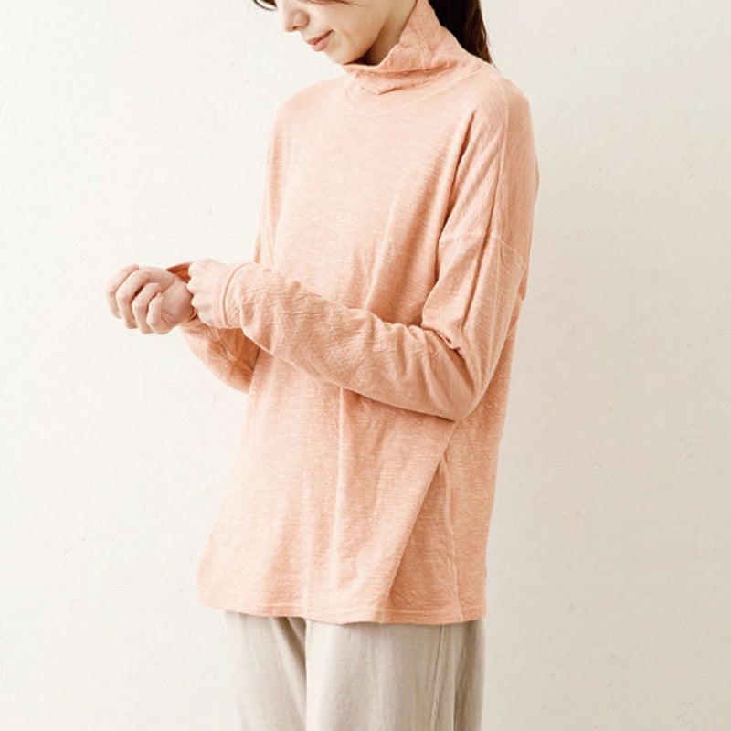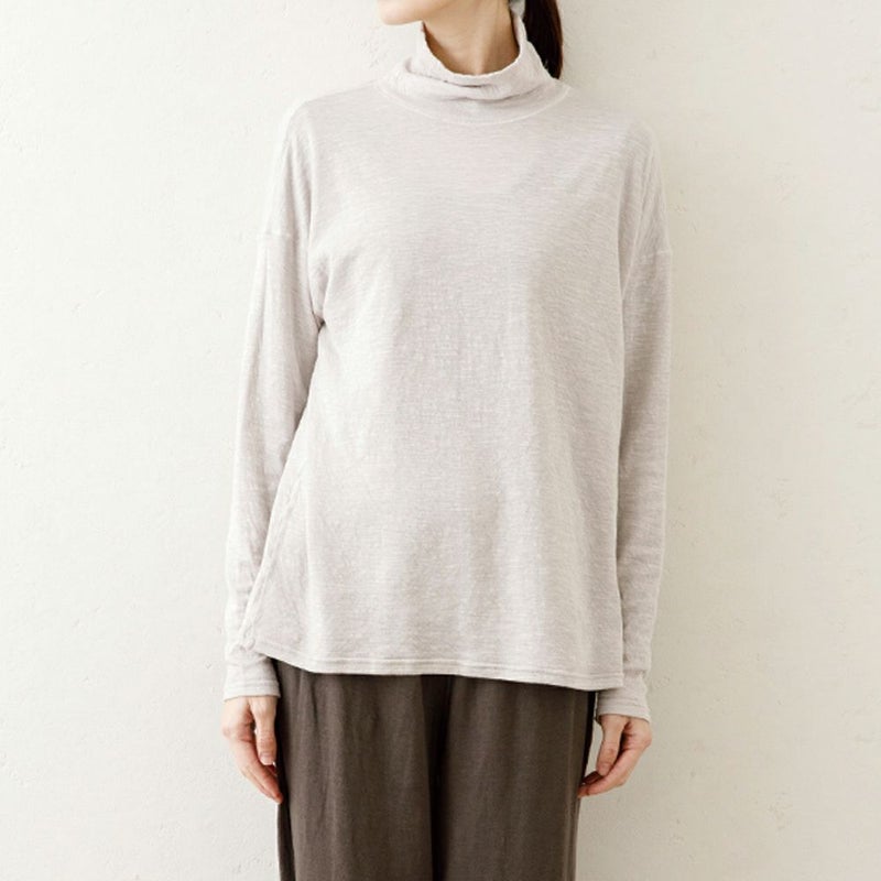 細い糸で編んだ二重の天竺ガーゼ(なめらか天竺)を使ったスーピマコットン100%のタートルネック。