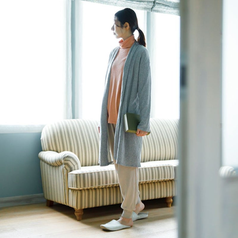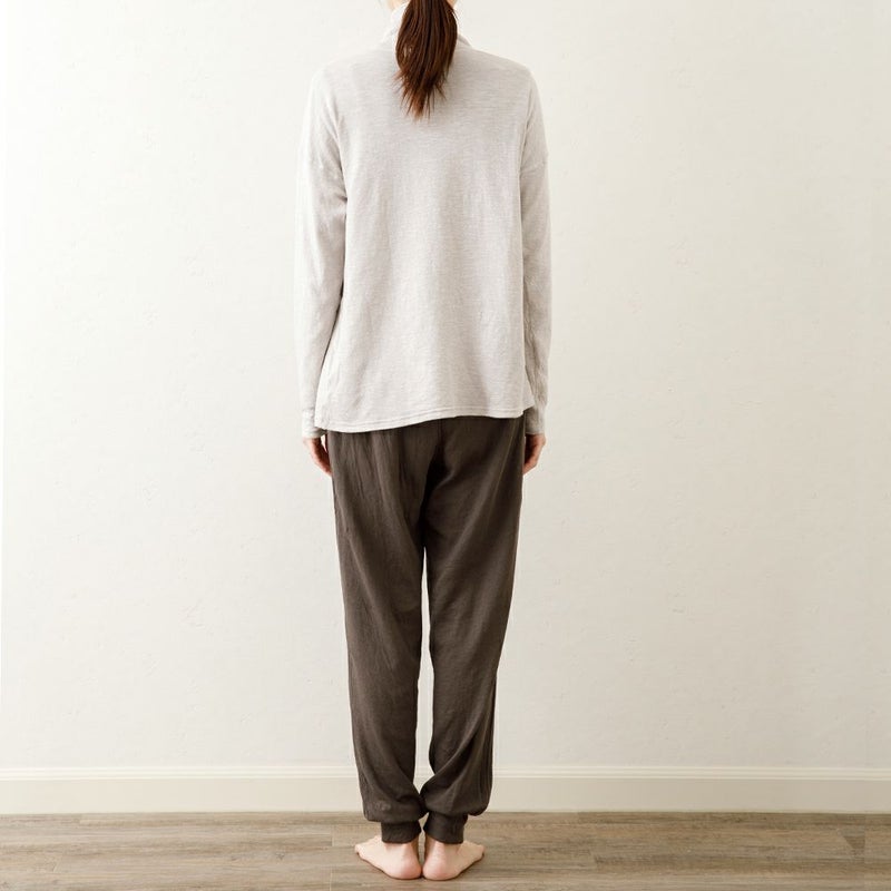 袖や身幅に少しゆとりをもたせているので締め付け感が無く、普段使いはもちろんルームウェアとしても重宝します。