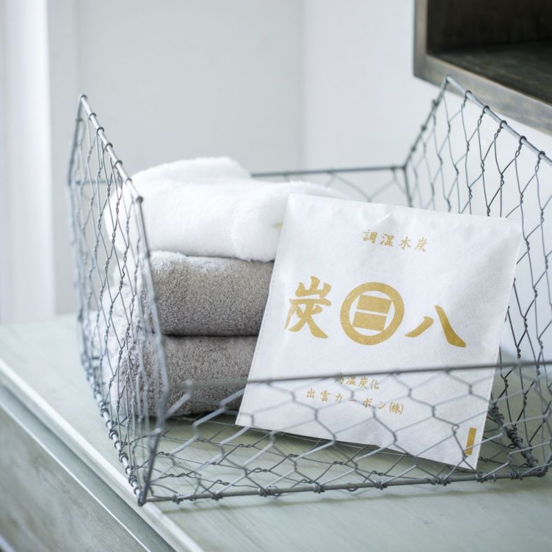 「炭八」は島根県出雲で生まれた調湿用の炭です。湿気の吸湿量、スピードが一般的な備長炭の2倍はあり、お部屋のジメジメや気になるニオイを解決します。室内に置いたり、押入やベッドの下に使用します。袋は二重構造で丈夫、長くお使いいただけるのもポイント。