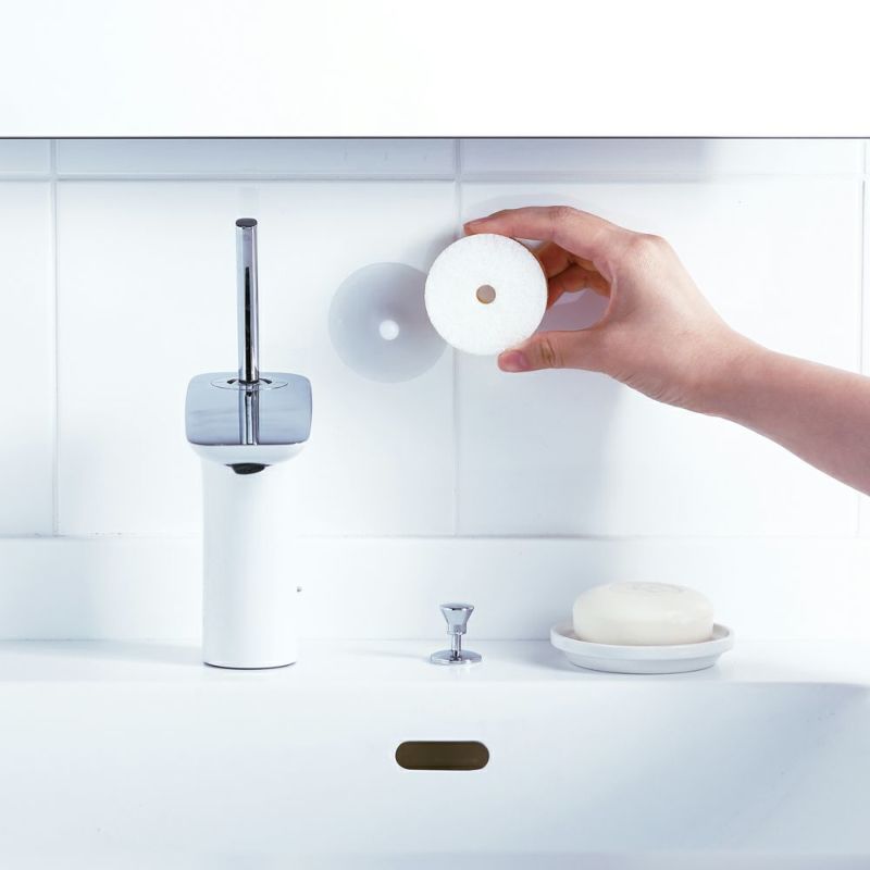 スポンジと吸盤がセットになっているので、洗面台まわりの好きな位置に取り付けることができて便利!シンプルなデザインでしっくりと馴染みます。コンパクトなサイズ感で、気が付いた時にササッとお掃除できるのもうれしいポイント。汚れ落ち、泡立ちと泡持ち、水切れの良さにこだわった3層構造で、使いやすさも抜群です。