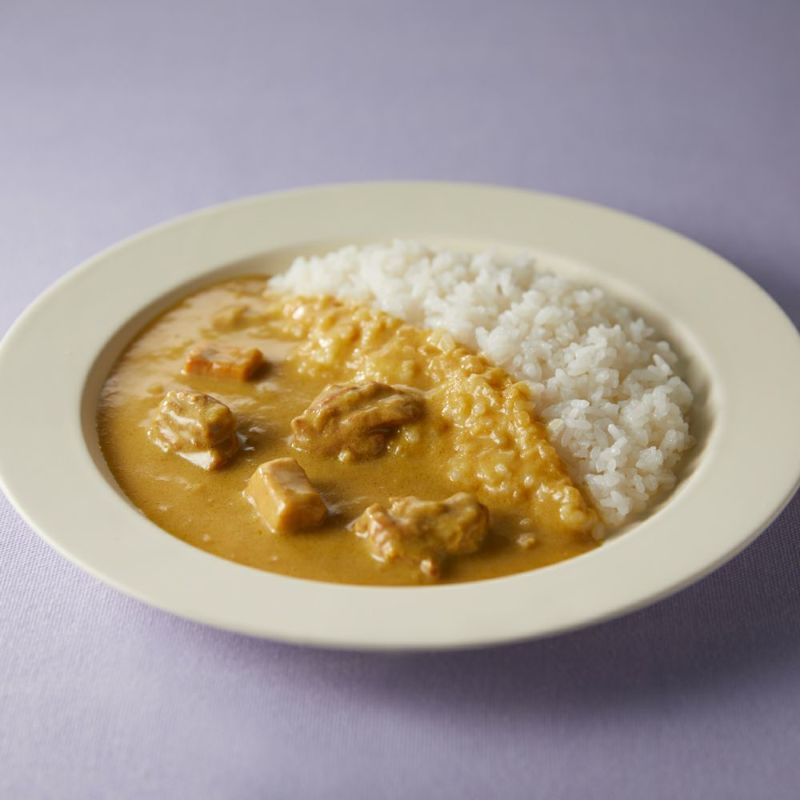 生クリームやクリームチーズが溶け込んだソースに、角切りのチーズを加えた濃厚な風味のチキンカレー。