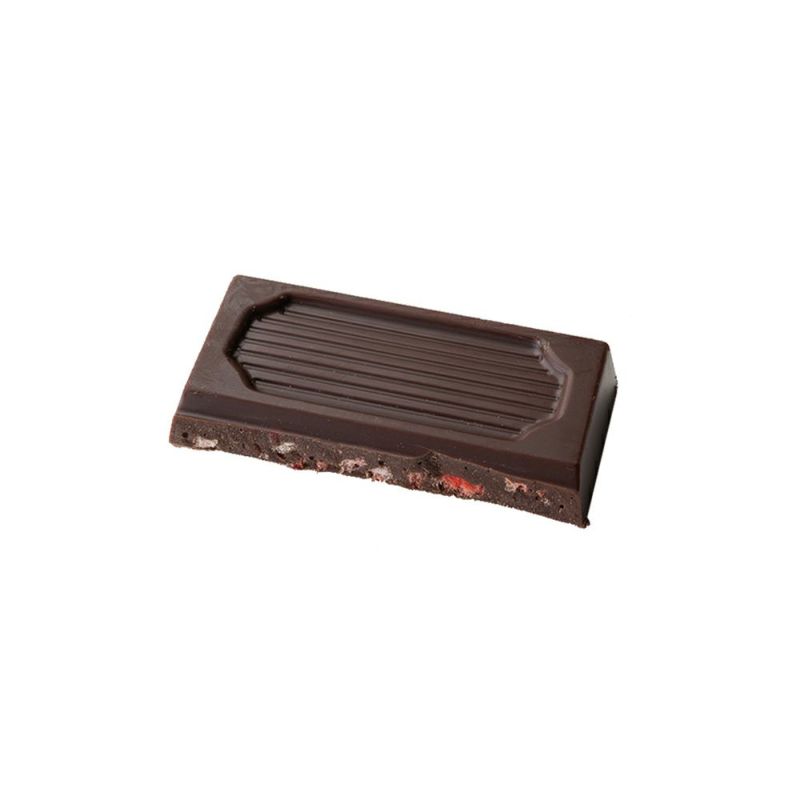 マール・ド・シャンパーニュを練り込んだビターチョコに、甘酸っぱい有機イチゴのアクセント。