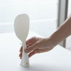 自立するしゃもじで、立つ・置く・掛けると便利に収納しておけます。 すくう面はお米がつきにくいエンボス加工で、使い勝手も◎!