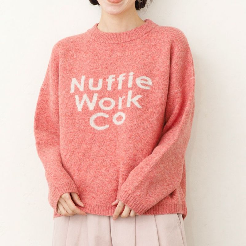 【2025秋冬セール】HIYORI(ひより) 14/-三者混ジャカードクルーネックロゴニット 赤