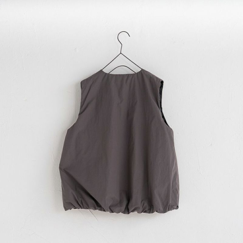 裾シャーリング仕様で、コクーンシルエットがでるようにこだわったベスト