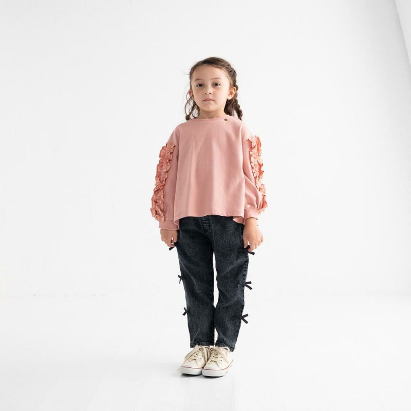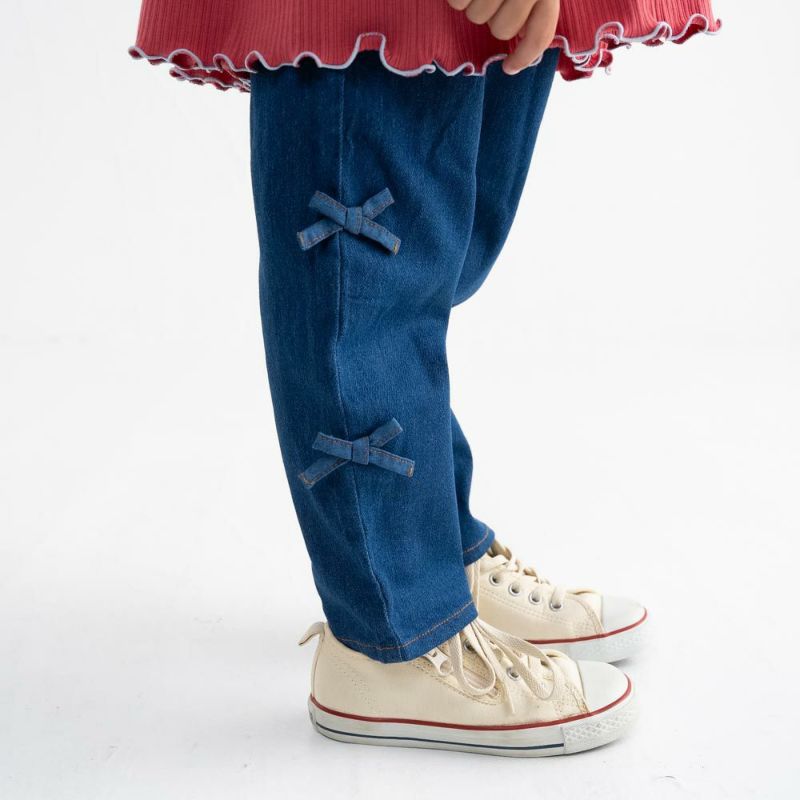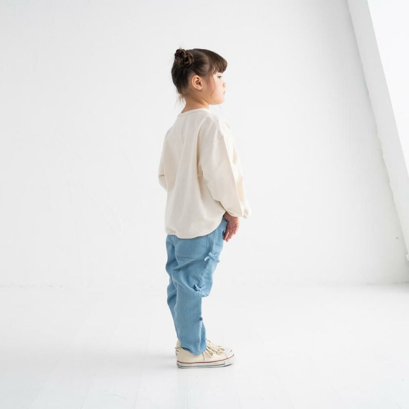 可愛いと着やすいのちょうどいいバランスが1本で叶うよくばりリボンデニム♪ラフな穿き心地はそのままにサイドにあしらったリボンでほんのりフェミニンに。ゆるやかなテーパードシルエットが体型を選ばず、デイリーに活躍します。