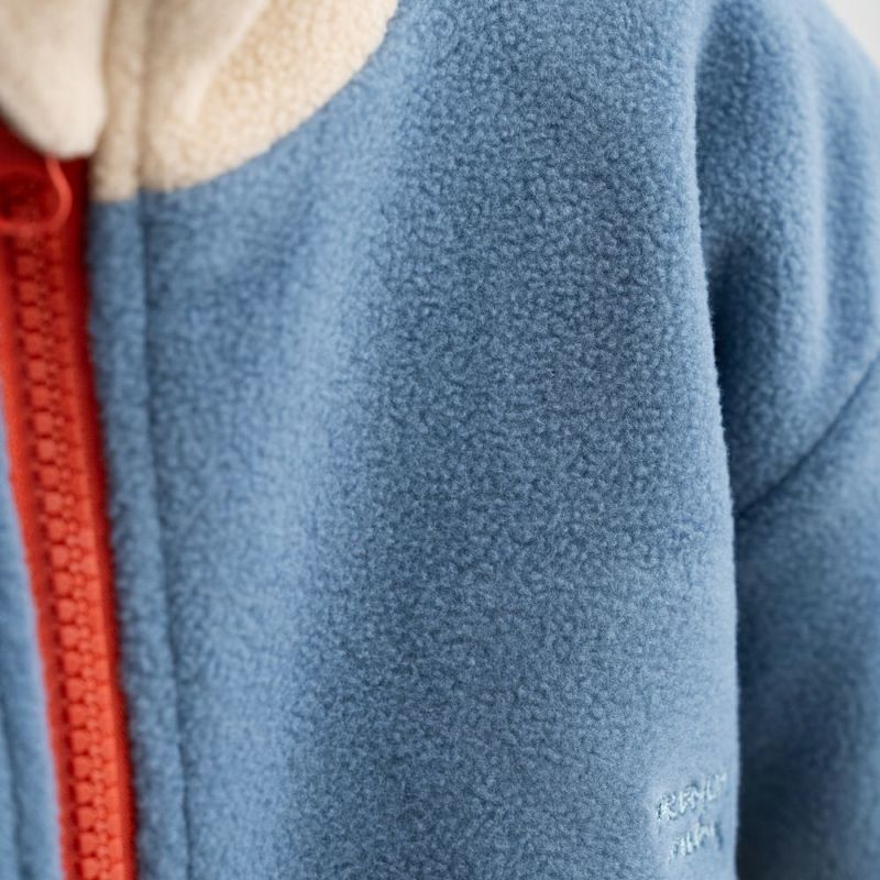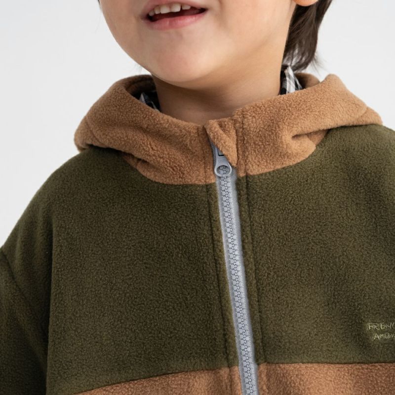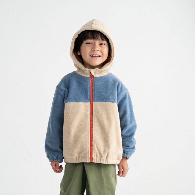 寒い日のおでかけに軽くてあったか♪カラフルな切り替えが目を引くバイカラーデザインのフリースフードジャケットです。胸元にはさりげない刺繍ロゴ入り!フロントはカラーファスナー仕様でアクセントにもなりつつ、脱ぎ着も簡単◎デイリーに頼れる!