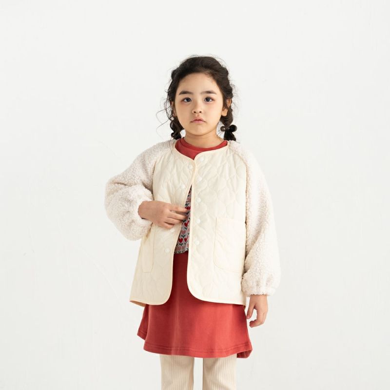 異素材ミックスが魅力のキルトアウターです。中わた入りのキルト生地は軽くてあたたかく、袖にはもこもこの粒ボア素材を。肌寒い季節にぴったりの着心地です。やや長めのチュニック丈でお尻まですっぽり隠れるから、防寒対策もばっちり。
