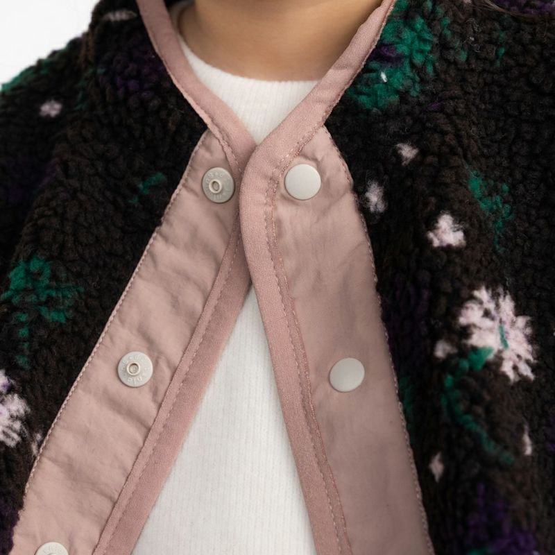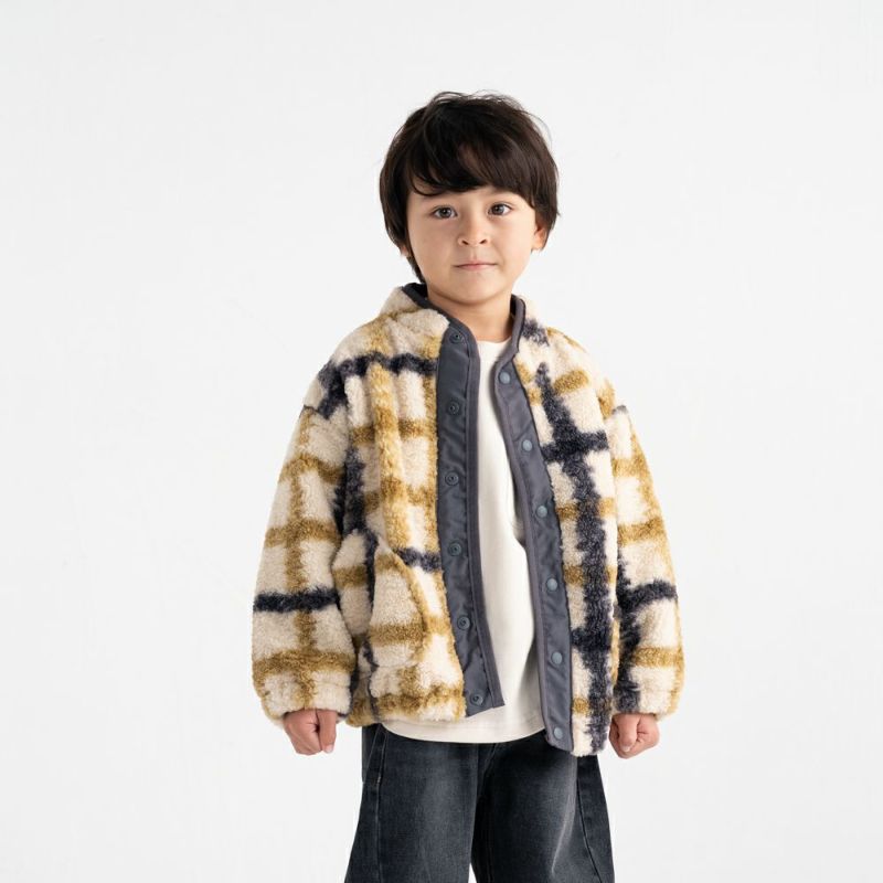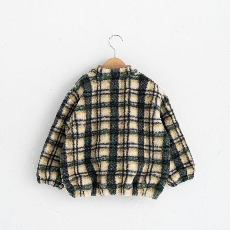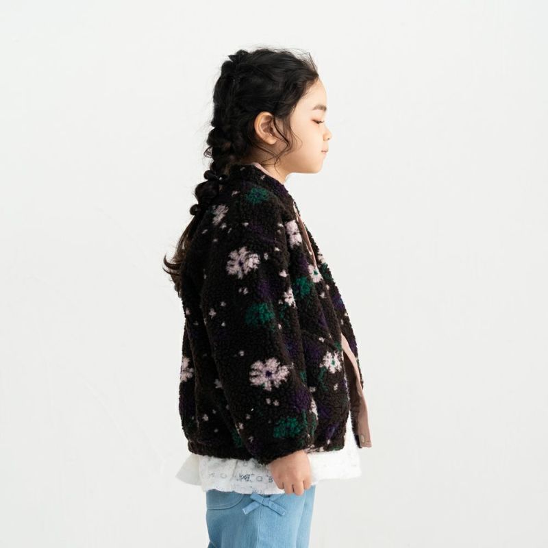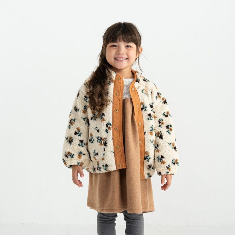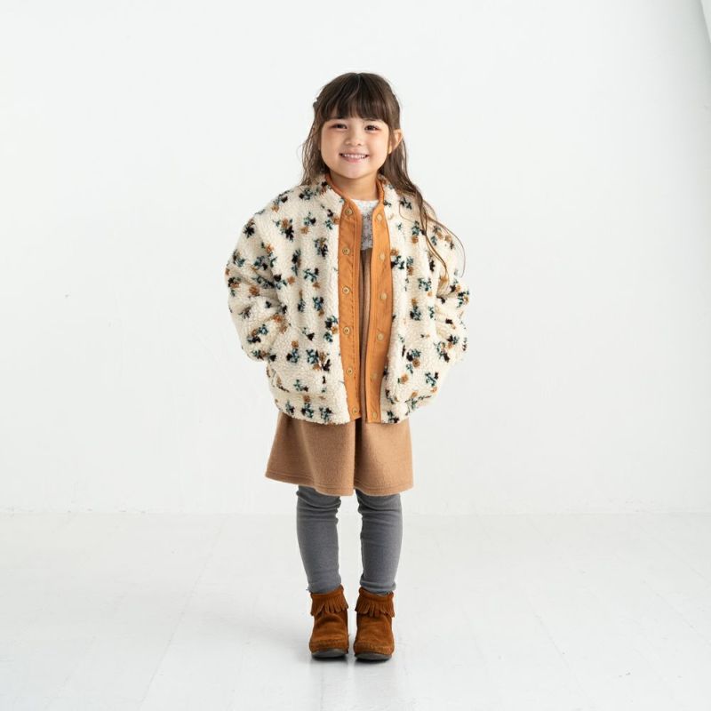柄が可愛い!思わず触りたくなるもこもこボアアウターです。大きめスナップボタンでお子様も着脱しやすい◎秋冬のコーディネートがぱっと明るくなる主役級アウターは今年の一押しアイテムです♪フードがないので通園通学にも使えるところが嬉しい!