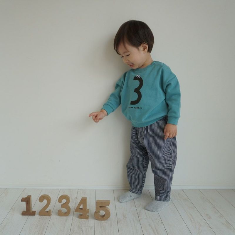 年齢や誕生日に合わせて数字を選んだり、兄弟や・友達などとお揃いコーデが楽しめるのでプレゼントにも喜ばれます。同柄ロンパースもあるのでベビーとのお揃いコーデも◎。