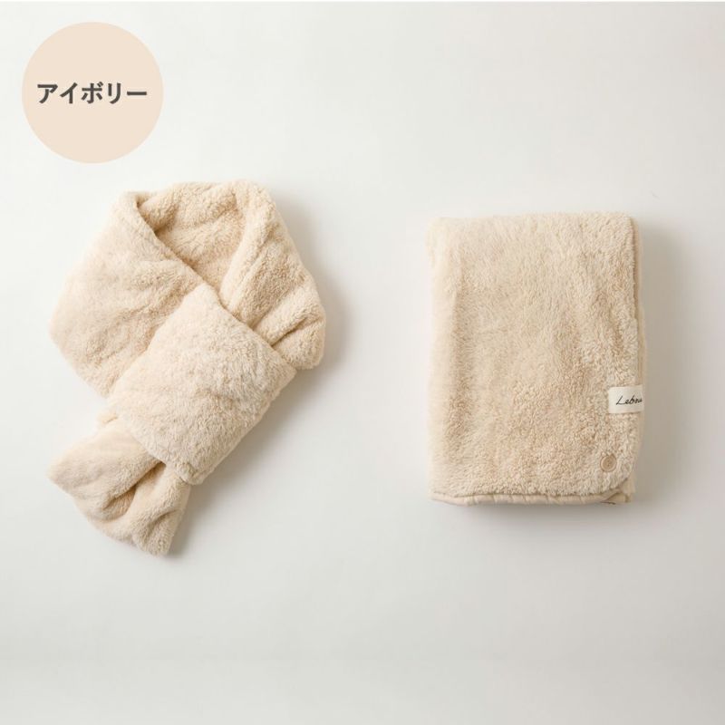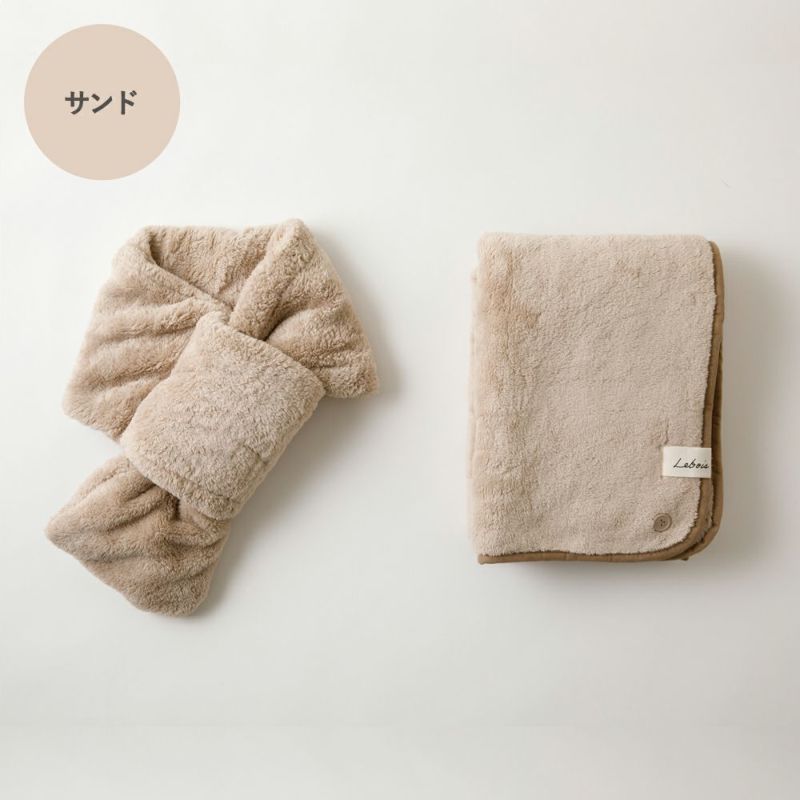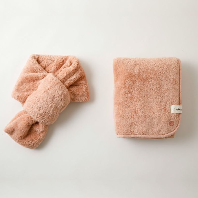 ネックウォーマーとブランケットに使用しているルボア生地は保温性抜群!
