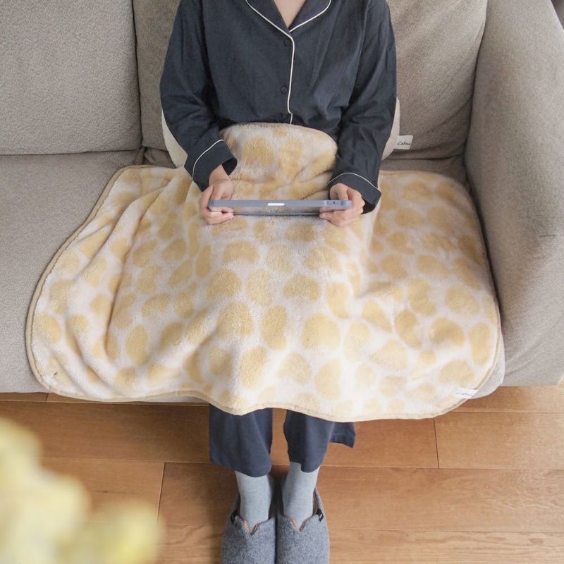 丸洗いOKの3WAYブランケットは、そのまま広げてひざかけに、ボタンを留めて腕を通すとボレロに、肩に羽織ればポンチョに早変わりと、マルチユースに活用していただけます♪