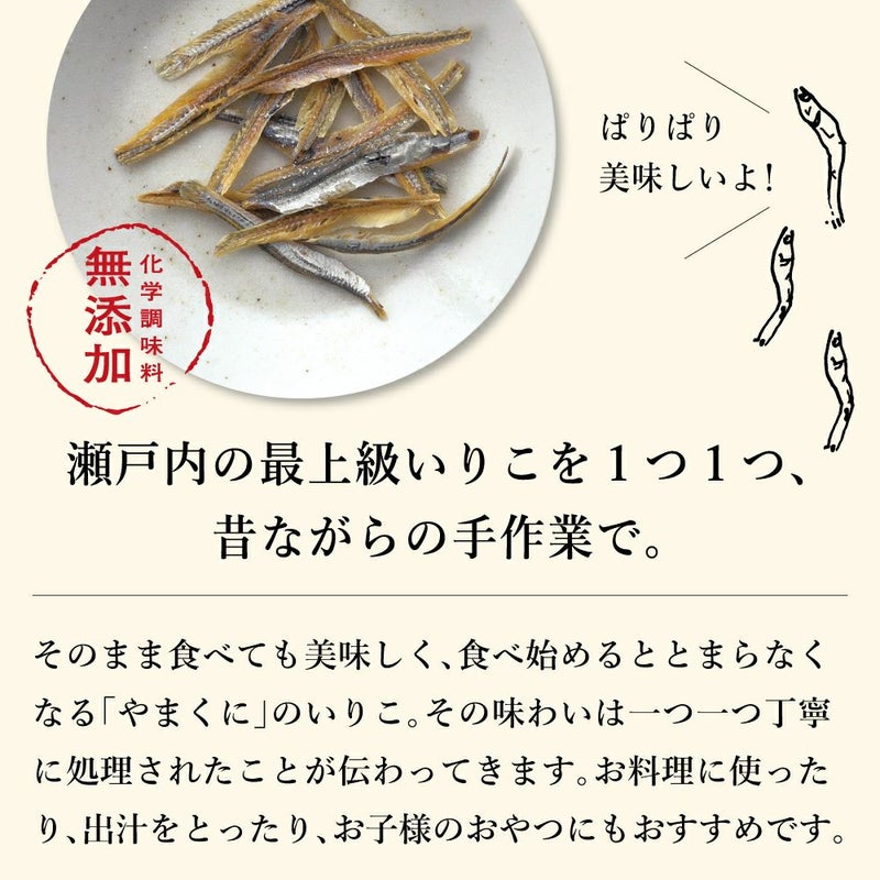 瀬戸内海産・選りすぐりの「銀付いりこ」を焙煎し、パリパリに仕上げたプレーンタイプ。