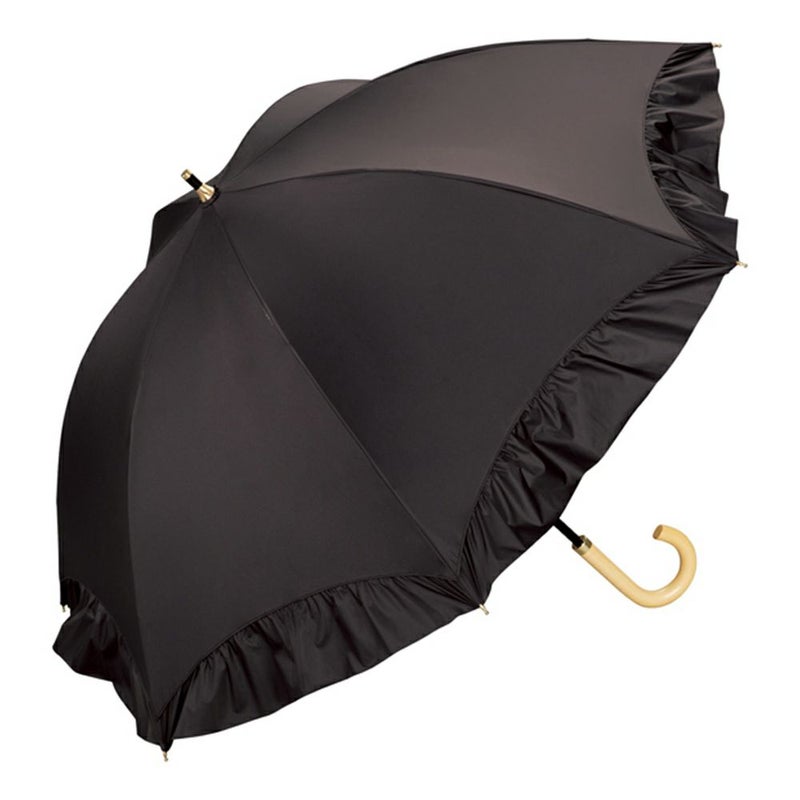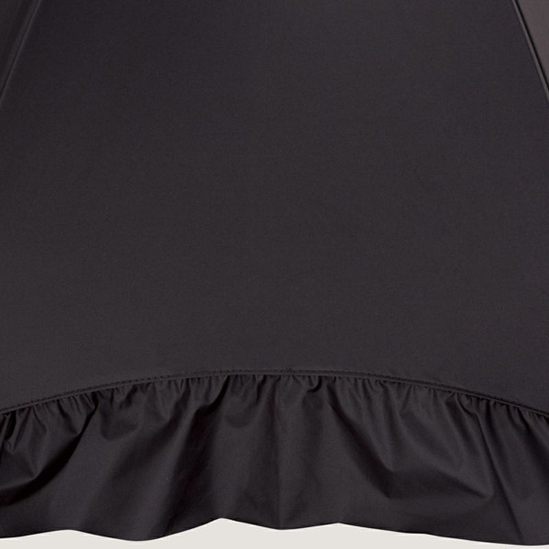 大きめのフリルを裾全体にあしらった、華やかながらも上品な長日傘です。