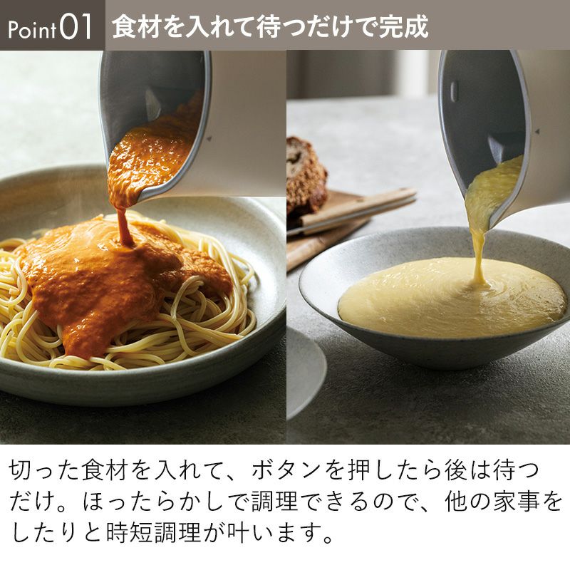 温度調節をしながら自動調理をするので、朝食にぴったりな温かいスープやポタージュがほったらかしで作れます。