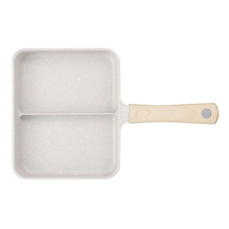 仕切り付きなので卵焼きや焼き鮭、ウインナーなど2品同時に調理出来るので時短になり、