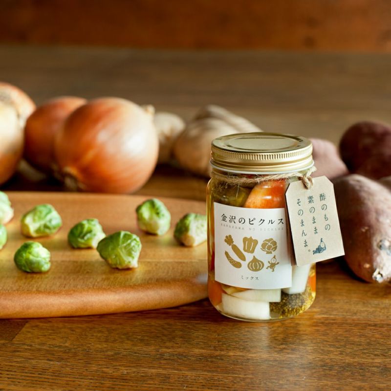 食材は自然そのもの。流通に乗らない規格外の野菜を無駄にせずおいしく食べてもらうため、お酢の力で長期保存可能なピクルスにした「金沢のピクルス」。