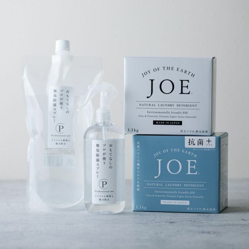 低刺激で人にやさしい、理想の除菌スプレーと洗濯物のお悩みにおすすめの抗菌洗剤「JOE」のギフト。