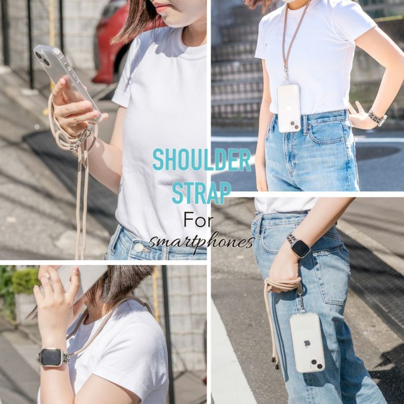 ストラップホールの無いケースやスマホにも使えるショルダーストラップ!