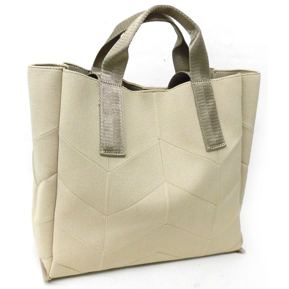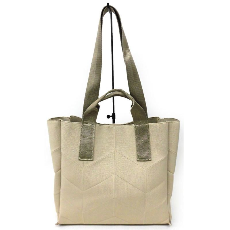 ファブリックトートバッグは表面に折り紙のように凹凸のある織りを施した特徴的なニットバッグです。