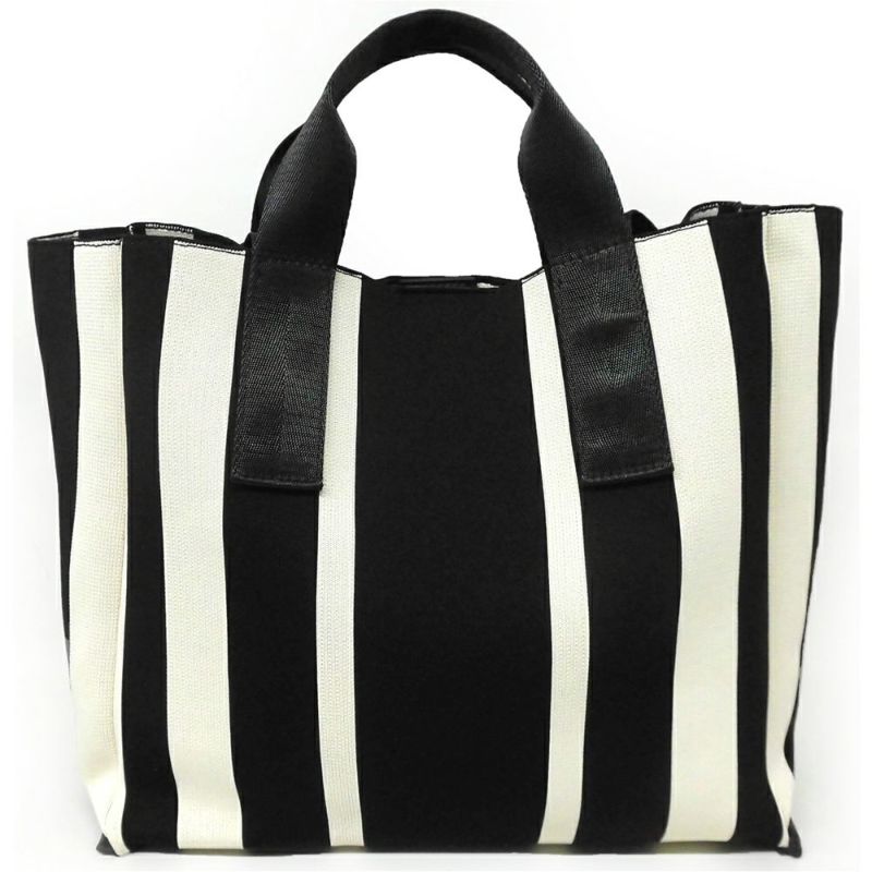 ニット特有の温かみと優しさがあるニットトートは、ナチュラルなベージュとシックな黒・ダークグレーの3色と、ランダムなストライプ柄でスタイリッシュにお持ちいただけるスタイリングの主役になる個性的な白黒の4色展開。