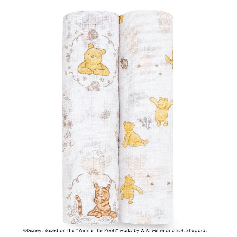 aden+anais essentials(エイデンアンドアネイ エッセンシャルズ)【日本正規品】モスリンコットン おくるみ 2枚 ディズニー ウィニーアンドフレンズ disney baby swaddle -winnie+friends- 2pk