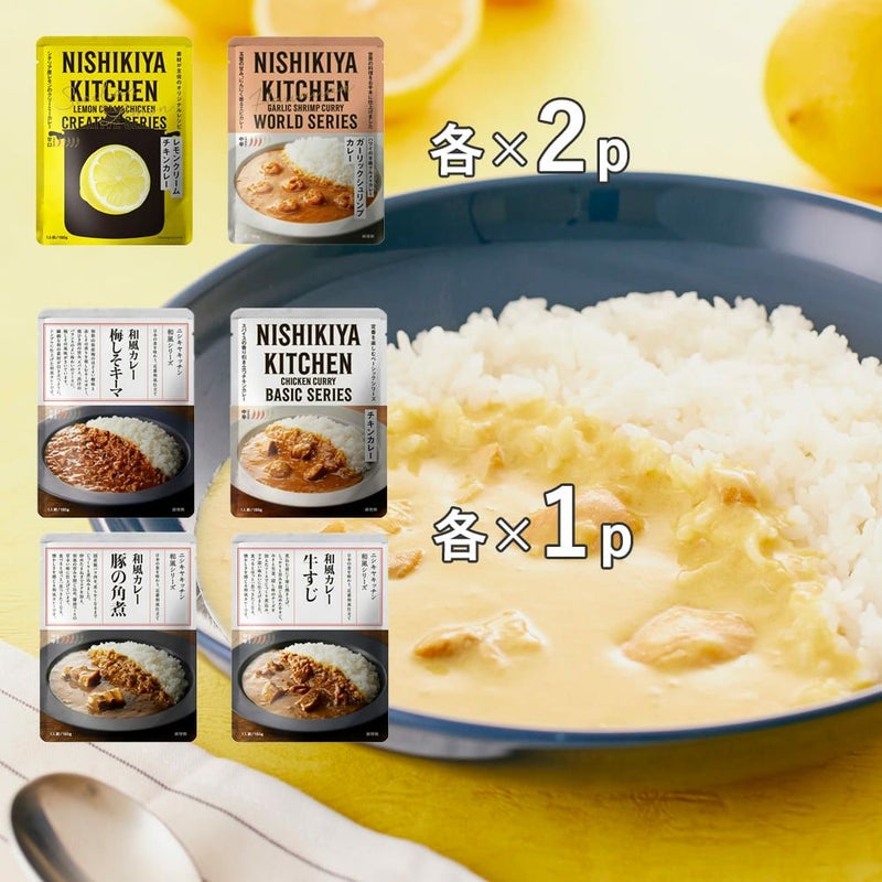 NISHIKIYA KITCHEN(ニシキヤキッチン)のお手軽でおいしい人気カレー、6種をあつめた8食セット。