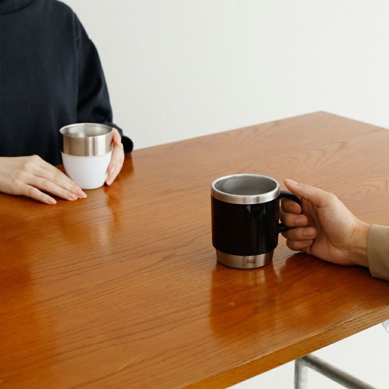 スタイリッシュなステンレスとプラスチックの二層構造が特徴のスタッキングマグです。